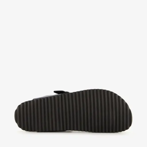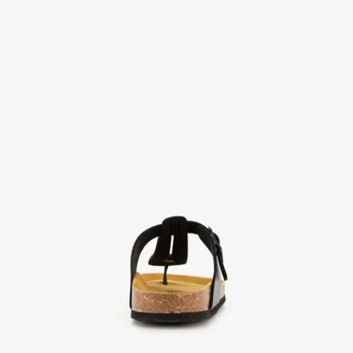 Zwarte bio teenslippers voor dames van Hush Puppies. Gemaakt van imitatieleer, een binnenwerk van leer en een rubberen zool. De teenslippers hebben een gespsluiting en een comfortabel, zacht voetbed van leer.