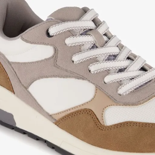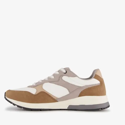 Beige sneakers voor heren van Hush Puppies. Het buitenwerk is gemaakt van mesh en imitatieleer, het binnenwerk van textiel en de stevige profielzool van rubber. Voorzien van een vetersluiting en een comfortabel voetbed van leer. Deze is uitneembaar zodat je eventueel jouw eigen zolen in de schoenen kan dragen. De sneakers hebben bruine en witte details op het buitenwerk.