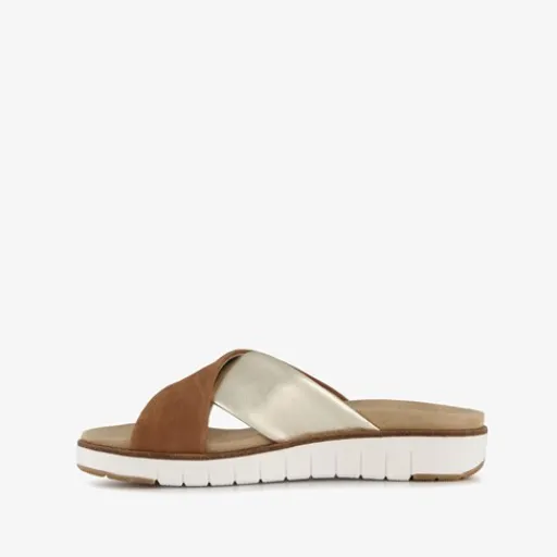 Hush Puppies Leren dames slippers bruin goud Outlet