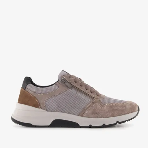 Grijze Hush Puppies sneakers voor heren. Het bovenwerk is van leer gemaakt, het binnenwerk van imitatieleer en de stevige zool met profiel is van rubber. Voorzien van een veter- en ritssluiting en een comfortabele binnenzool van leer. Deze is uitneembaar zodat je eventueel je eigen zolen in de schoenen kan dragen. De sneakers hebben beige en bruine details en een wit-zwarte buitenzool.