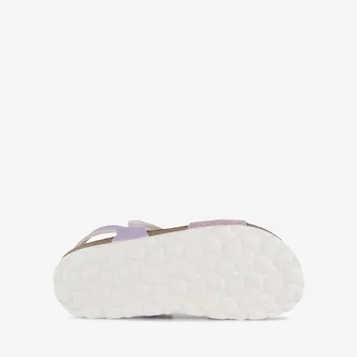 Lila bio sandalen voor meisjes van Hush Puppies. Gemaakt van imitatieleer met een binnenwerk van textiel en een profielzool van rubber. Voorzien van klittenbandsluitingen bij de tenen en de enkel. De band bij de tenen wordt versierd met een printje en een bloem. Het comfortabele voetbed is gemaakt van leer en is niet uitneembaar.