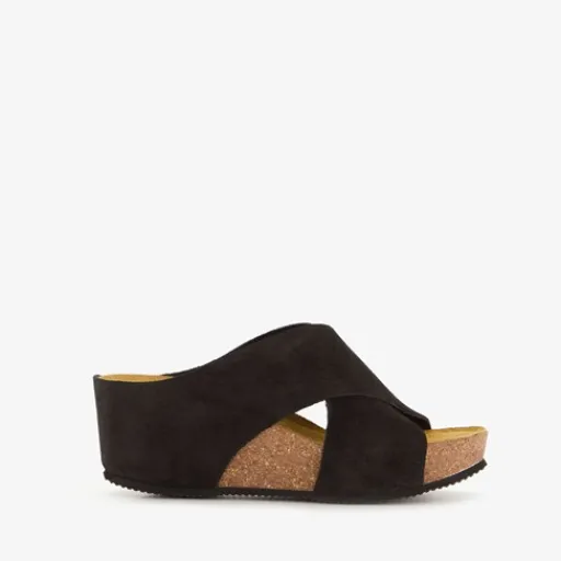 Hush Puppies Suede dames slippers sleehak zwart Clearance