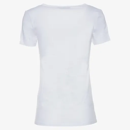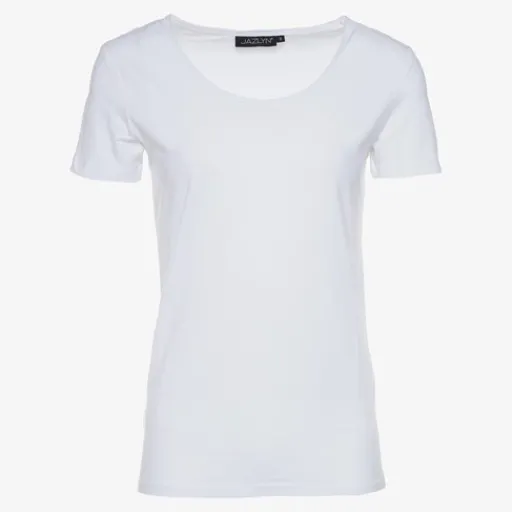 Wit t-shirt voor dames uit de Jazlyn collectie. Voorzien van korte mouwen en een ronde hals. Het t-shirt heeft stretch voor een comfortabele en aansluitende pasvorm. Gemaakt van 95% katoen en 5% elasthan. Nu twee t-shirts voor 12 euro!ΒΆΒΆ