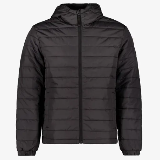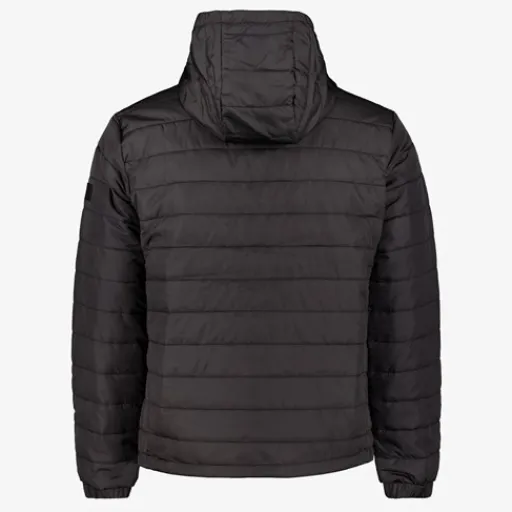 Zwarte, lichtgewatteerde jas voor heren van JJ REBEL. Voorzien van een ritssluiting, vaste capuchon en twee zakken. De jas is gemaakt van 100% polyester.
