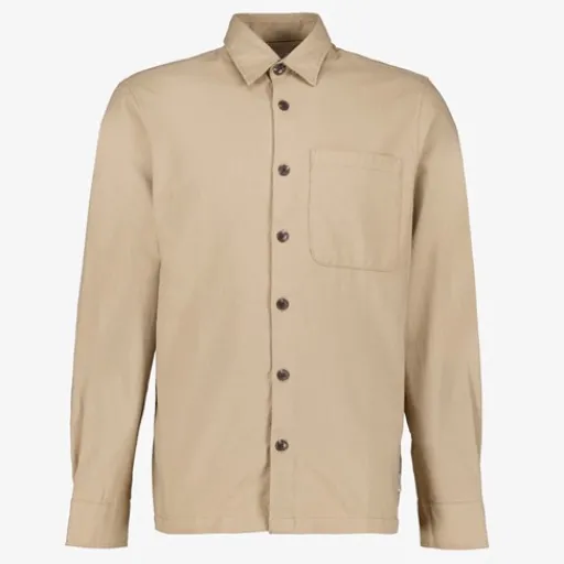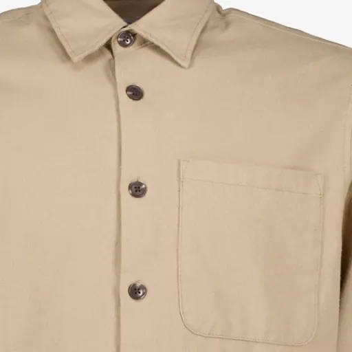 Lichtbruin overshirt voor heren uit de JJ REBEL collectie. Voorzien van knoopsluitingen, een omgeslagen kraagje en een bortszakje. Het overhemd heeft knopen bij de mouwen en is gemaakt van 60% katoen en 40% polyester.