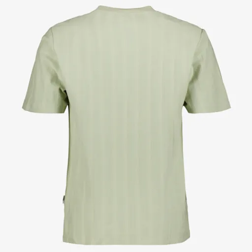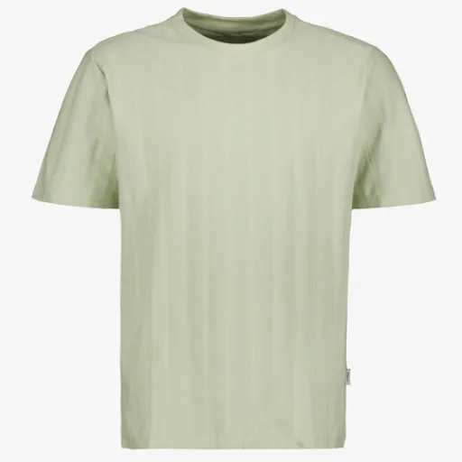 Lichtgroen heren T-shirt van JJ REBEL. Voorzien van een hoge, ronde hals, korte mouwen en een structuur in de stof. Gemaakt van 80% katoen en 20% polyester.