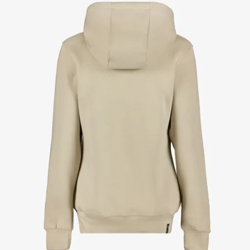Beige hoodie voor dames uit de Kjelvik outdoor collectie. Voorzien van een capuchon met aantrekkoorden, een buidelzak en merkopdruk aan de voorzijde. Gemaakt van 60% katoen en 40% polyester.