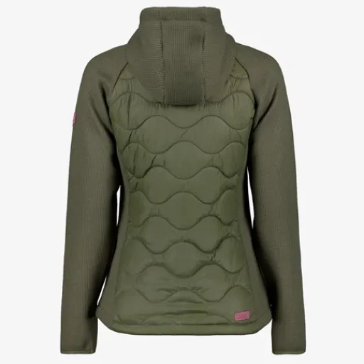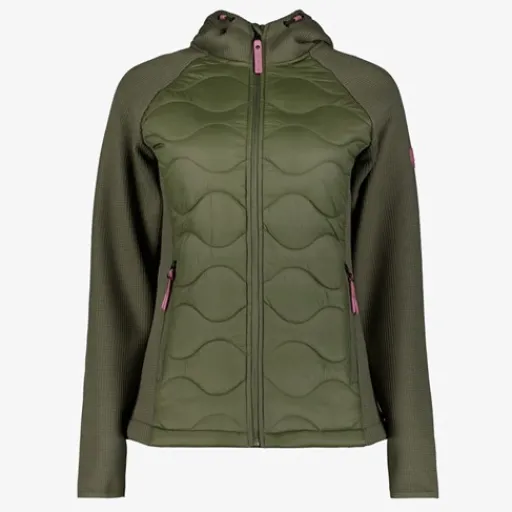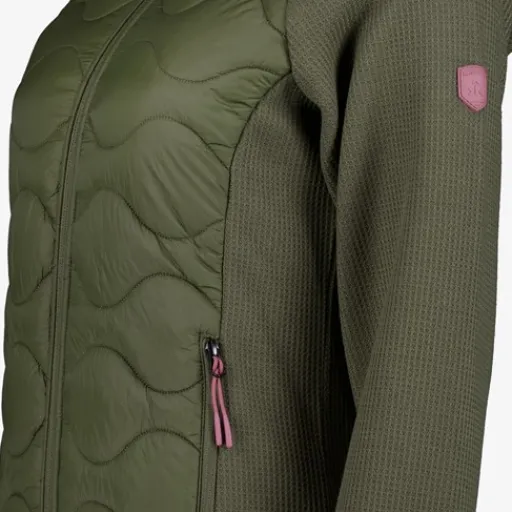 Groene jas met een gewatteerde body voor dames van Kjelvik. Voorzien van een capuchon met ritssluiting en kinbescherming. De jas is vervaardig van ademend, waterafstotend en zachte fleece materiaal. Voorzien van twee steekzakken met ritssluiting aan de voorzijde en gemaakt van 96% polyester en 4% elastaan.