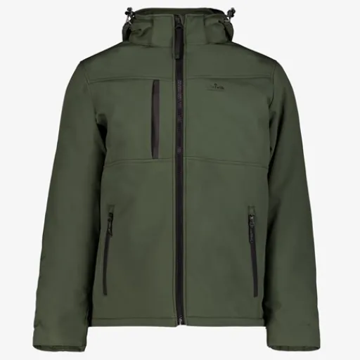 Groene, 3-laagse softshell jas voor heren van Kjelvik. Voorzien van een ritssluiting, hoge kraag en een afneembare capuchon met aansnoerkoordjes. De softshell jas is ademend, waterafstotend en winddicht. Dankzij het gebruik van stretch heeft de jas een comfortabele pasvorm. Voorzien van twee zakken met ritsen en een borstzakje. De softshell jas is gemaakt van 94% polyester en 6% elastaan.