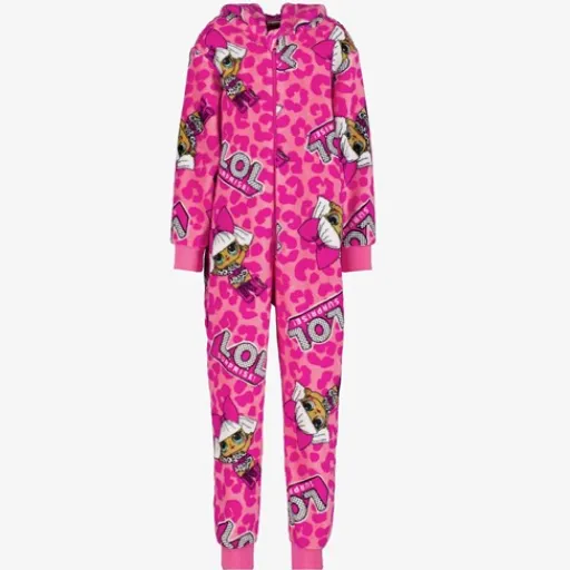 Roze L.O.L. Surprise onesie. De onesie is heerlijk zacht en warm en heeft een capuchon met opdruk en een schattige strik. Lekker om thuis in te relaxen, buiten te spelen of een feestje in te vieren. De onesie heeft een ritssluiting, elastiek in de boorden en is gemaakt van 100% polyester.ΒΆΒΆ