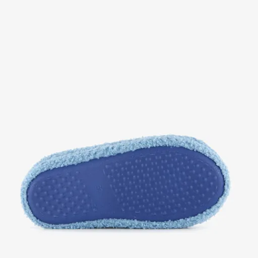 Blauwe teddy sloffen met een opdruk van Angel uit Lilo & Stitch. De slofjes zijn gemaakt van textiel, ze hebben een warme voering van textiel en een profielzool van rubber.
