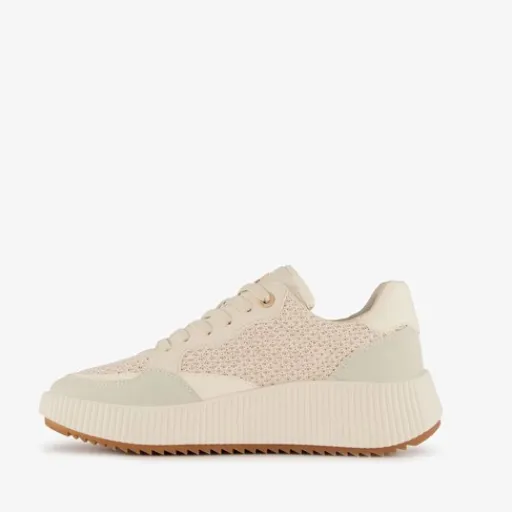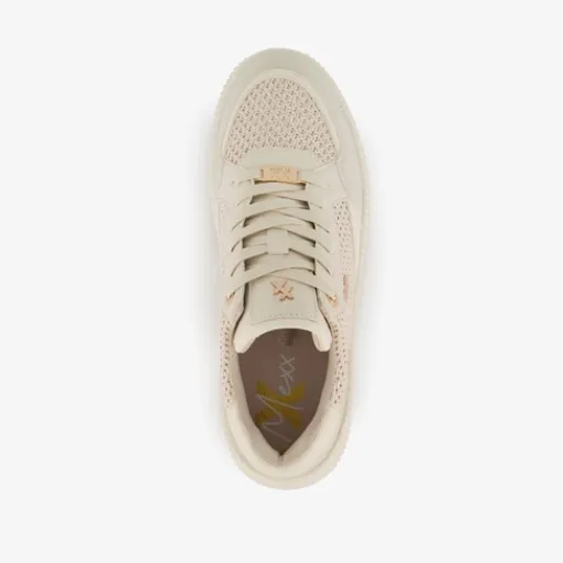 Lage, beige XX by Mexx dames sneakers. Gemaakt van textiel, een binnenwerk van textiel en een rubberen zool. De sneakers hebben een vetersluiting en uitneembaar voetbed.