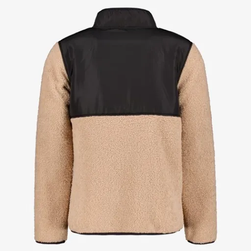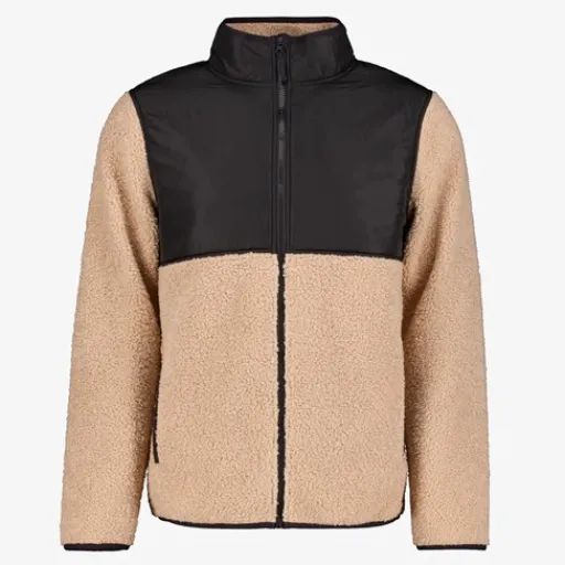 Beige met zwart teddy fleece vest van Mountain Peak. Voorzien van een ritssluiting met kinbeschermer en zakken met ritsen. Het zachte, warme teddy fleece vest is comfortabel in dragen en gemaakt van 100% polyester.