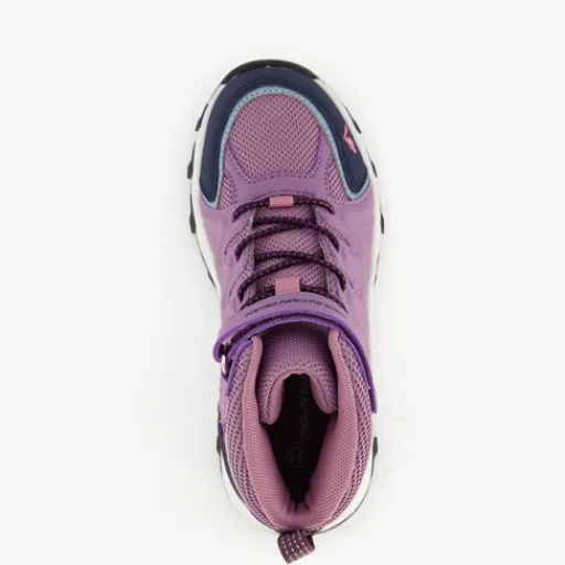 Roze wandelschoenen voor meisjes van Mountain Peak. Het buitenwerk is gemaakt van imitatieleer, het binnenwerk van textiel en een stevige profielzool van rubber. Voorzien van vetersluiting en een klittenband voor een optimale pasvorm. Deze gevoerde wandelschoenen hebben hiellusjes voor een makkelijke instap en een comfortabele voetbed van textiel. Binnenzool is uitneembaar. Categorie A/B wandelschoenen zijn middelhoog en bieden voldoende steun en stabiliteit voor onverharde of ongelijke ondergronden. Ze zijn geschikt als allround wandel- en bergschoenen. De zolen van categorie A/B wandelschoenen zijn nog voldoende soepel.