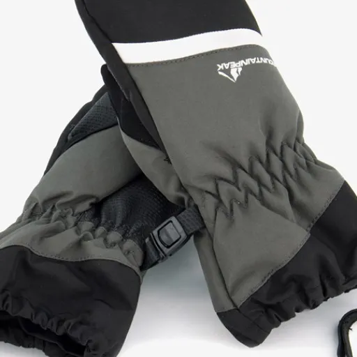 Zwarte skiwanten voor kinderen van Mountain Peak. De skihandschoenen hebben elastiek bij de boorden, een clipsluiting om de skiwanten aan elkaar en je jas te bevestigen. De skiwanten hebben grip in de handpalmen en een zachte, warme voering. Gemaakt van polyester.