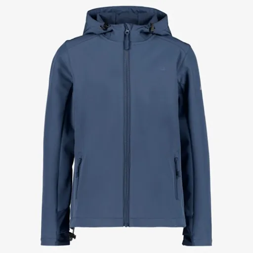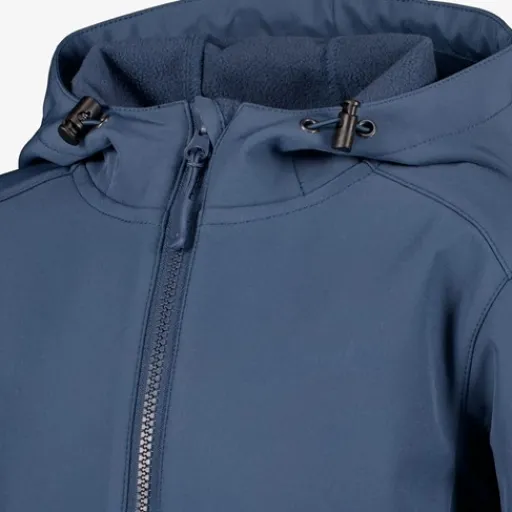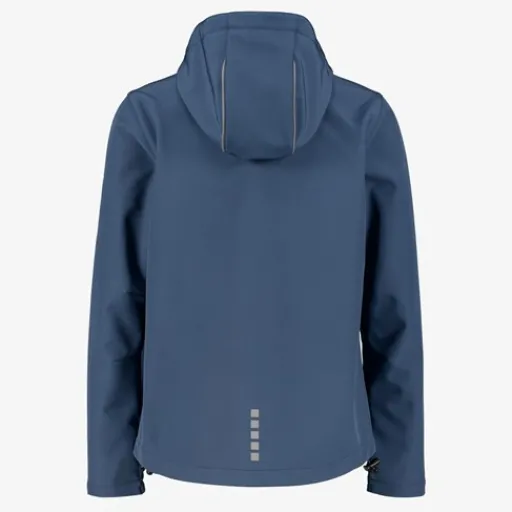 Blauwe softshell jas voor jongens van Mountain Peak. Voorzien van een capuchon met aantrekkoordjes, een ritssluiting met kinbescherming, reflecterende details zodat je zichtbaar bent in het donker, lange mouwen met duimgaten en twee zakken met rits aan de voorzijde. De jas is luchtig, waterdicht, winddicht en warmte regulerend. Daarnaast heeft de jas een waterkolom van 8.000 MM. Gemaakt van 95% polyester en 5% elastaan.