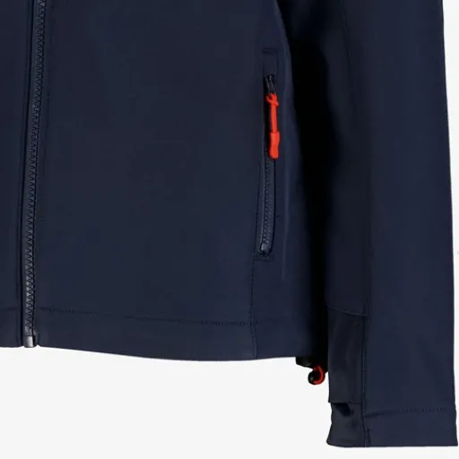 Blauwe softshell jas voor kids van Mountain Peak. Voorzien van een ritssluiting met windstoppers en een kinbeschermer, een vaste capuchon met aansnoerkoordjes en zakken met ritsen. De softshell jas heeft waterdichte ritsen en verstelbare boorden met klittenband. Vervaardigd vab ademend, winddicht en warmte regulerend materiaal met een waterkolom van 8.000 MM. Gemaakt van 95% polyester en 5% elastaan.