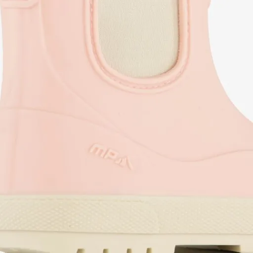 Lichtroze regenlaarzen voor kids van Mountain Peak. Deze regenlaarsjes zijn waterbestendig en zijn voorzien van twee aantreklusjes op de schacht, en elastische inzetten voor een makkelijke instap. Gemaakt van PVC met een binnenwerk en binnenzool van textiel. Deze is uitneembaar.