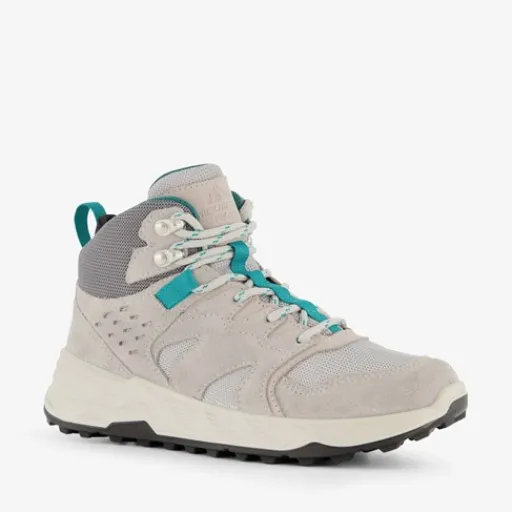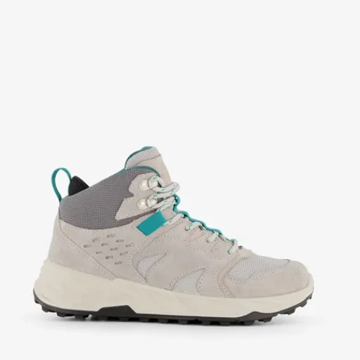 Hoge, grijze categorie A/B wandelschoenen voor dames van Mountain Peak. Gemaakt van leer met een binnenwerk van textiel en een stevige profielzool van rubber. Voorzien van een vetersluiting, hiellusjes en een comfortabele binnenzool van textiel. Deze is uitneembaar zodat je eventueel jouw eigen zolen in de schoenen kan dragen. De schoenen hebben donkergrijze en aquablauwe details bij de enkel en zijn waterafstotend. Zo kun jij gerust hele middagen wandelen en genieten van deze stijlvolle wandelschoenen. Categorie A/B wandelschoenen zijn middelhoog en bieden voldoende steun en stabiliteit voor onverharde of ongelijke ondergronden. Ze zijn geschikt als allround wandel- en bergschoenen. De zolen van categorie A/B wandelschoenen zijn nog voldoende soepel.¶