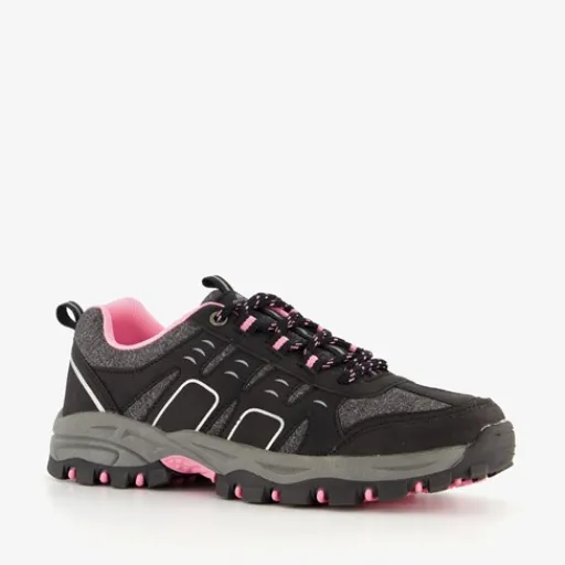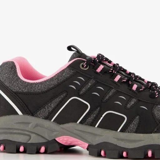 Zwarte categorie A wandelschoenen voor dames van Mountain Peak. Het buitenwerk is een combinatie van textiel en leer, het binnenwerk is gemaakt van textiel en de stevige profielzool van rubber. De schoenen zijn voorzien van een vetersluiting en aantreklusjes bij de hak en op de tong. Het uitneembare voetbed bevat Memory Foam wat comfort en demping biedt. Deze lage wandelschoenen zijn waterafstotend en worden versierd met grijze details. Categorie A wandelschoenen zijn laag van model, soepel en licht. Ze zijn geschikt om te wandelen op verhard of licht onverhard terrein. Wandelschoenen uit categorie A kun je gebruiken tijdens het lopen van een vierdaagse of tijdens een wandeling door het bos of op het strand.