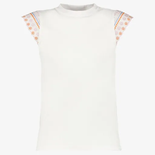 MyWay Meisjes T-shirt met geborduurde mouwen wit New