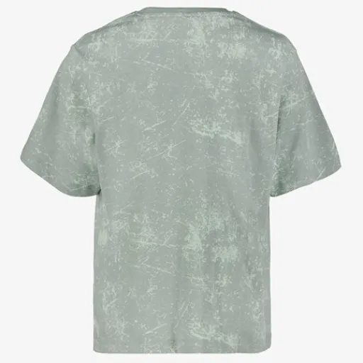 Grijsgroen Name It VENZEL Blue Mirage Regular Fit T-shirt voor jongens. Voorzien van korte mouwen, een ronde hals en een grafische, witte print. Het shirt is gemaakt van 100% katoen.