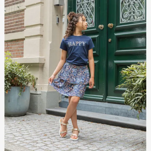 Donkerblauw Name It Vinaya T-shirt voor meisjes. Voorzien van korte mouwen, een ronde hals en een tekstopdruk aan de voorzijde. Het shirt heeft een aansluitende pasvorm en is gemaakt van 100% katoen.