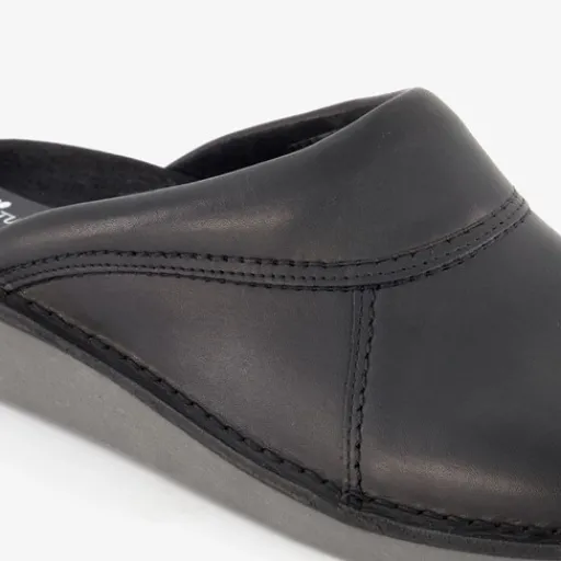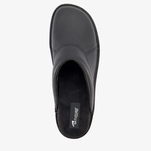 Zwarte muilen voor heren van Natuform. Gemaakt van leer, een binnenwerk van leer en een stevige profielzool. De muilen hebben een elastiche instap en comfortabel voetbed. De buitenzool biedt grip en demping.