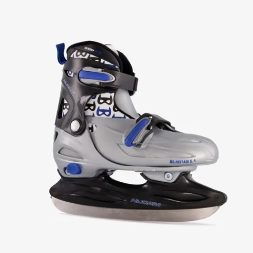 Hardboot ijshockeyschaatsen voor kinderen. Voorzien van een uitneembare mesh binnenschoen met geborstelde polyester voering. Het schokabsorberende buitenwerk is gemaakt van stevige kunststof. De schaatsen zijn in 4 maten verstelbaar doormiddel van een drukknop op de hier. Daarnaast hebben ze een dubbele snelsluiting, roestvaststalen ijshockeyschaatsijzers en een schaatshouder van synthetisch materiaal. De schaatsijzers worden voorgeslapen geleverd.