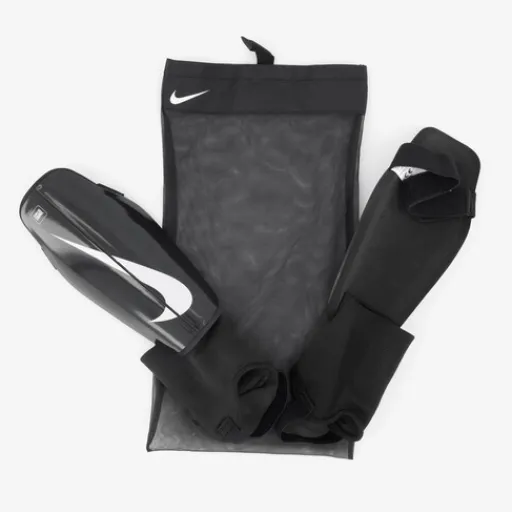 Zwarte Nike Charge Shinguards scheenbeschermers. Voorzien van een harde buitenlaag en schuimlaag aan de binnenzijde voor comfort. De scheenbeschermer heeft een stijgbeugelontwerp en zit aan de onderkant vast aan je voet zodat de scheenbeschermer heel de wedstrijd of training op zijn plaats blijft zitten.