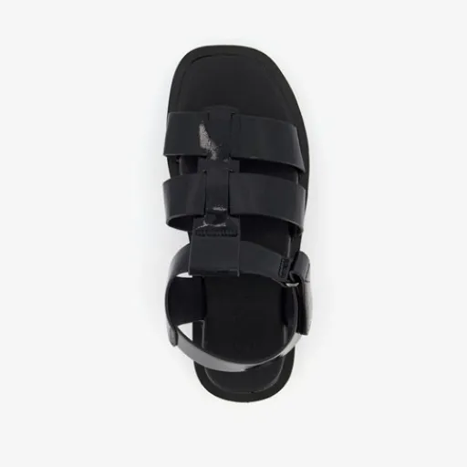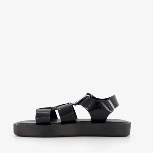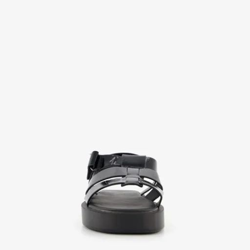 Zwarte, lak vissers sandalen voor dames uit de ONLY Shoes collectie. Gemaakt imitatieleer met een stevige zool van rubber. De sandalen hebben meerdere bandjes over de wreef en een bandje met klittenbandsluiting bij de enkel. Het zachte, comfortabel voetbed is niet uitneembaar.