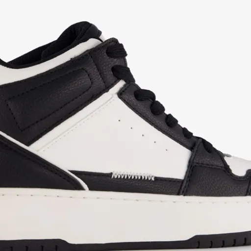 Hoge, witte sneakers van ONLY Shoes voor dames. Het buitenwerk heeft zwarte accenten en is gemaakt van imitatieleer, het binnenwerk is gemaakt van textiel en de stevige profielzool van rubber. De schoenen zijn voorzien van hiellusjes voor een makkelijke instap en een vetersluiting voor een fijne pasvorm. Het comfortabele voetbed van textiel is niet uitneembaar.ΒΆΒΆ
