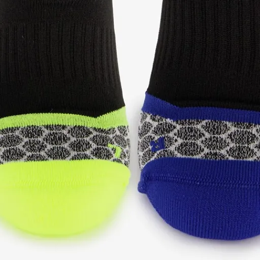 Twee paar hardloopsokken van Osaga. De hardloopsokken hebben ondersteuning op de wreef en zijn vervaardigd van vochtregulerend materiaal zodat je voeten droog blijven tijdens het hardlopen. Gemaakt van 97% polyamide en 3% elastaan.