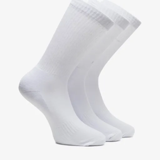 Drie paar witte sport sneakersokken van Osaga. De sokken zijn middellang van model en gemaakt van 85% katoen, 10% polyester en 5% elastaan.