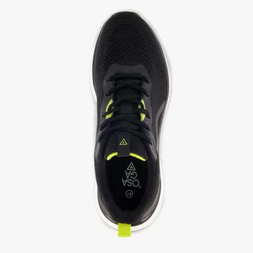 Zwarte hardloopschoenen voor dames van Osaga. Het buitenwerk is gemaakt van mesh en textiel, het binnenwerk van textiel en de flexibele profielzool is van rubber. Voorzien van een vetersluiting en aantreklusjes op de tong en hak. De hardloopschoenen bieden veel demping en comfort dankzij de Soft Foam binnenzool en de uitsparingen in de zool. Binnenzool is uitneembaar.