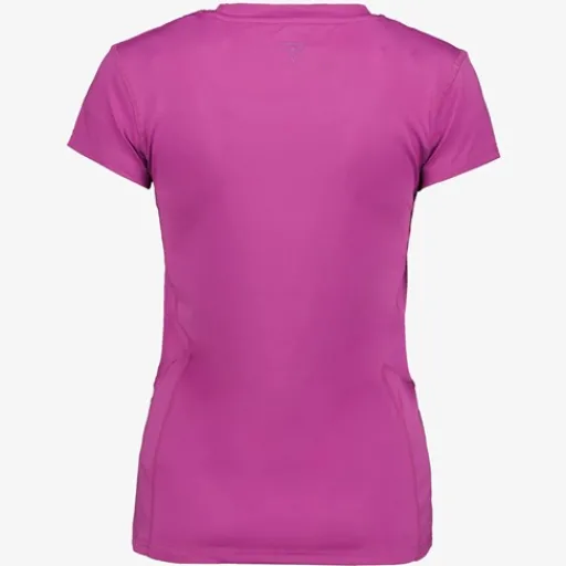 Roze sport T-shirt voor dames. Voorzien van korte mouwen, een ronde hals en een comfortabele pasvorm zodat je vrij kunt bewegen. Het sportshirt is vervaardigd van sneldrogend materiaal zodat je droog blijft tijdens het trainen. Gemaakt van 87% polyester en 13% elastaan.