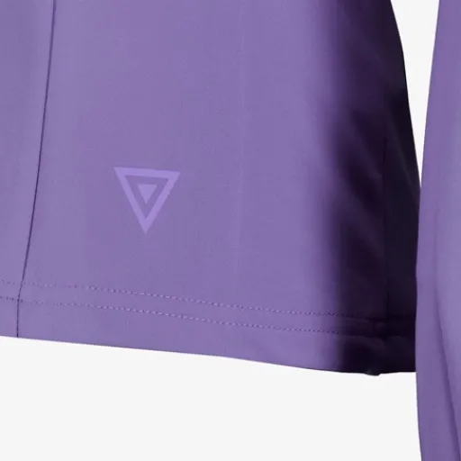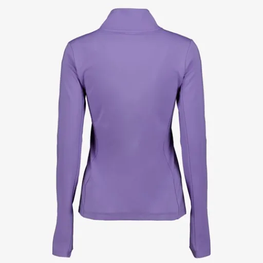 Paarse trainingsjas voor dames van Osaga. Voorzien van een hoge kraag, een ritssluiting met kinbeschermer en duimgaten in de mouwen. De trainingsjas is gemaakt van 80% polyester en 20% elastaan.