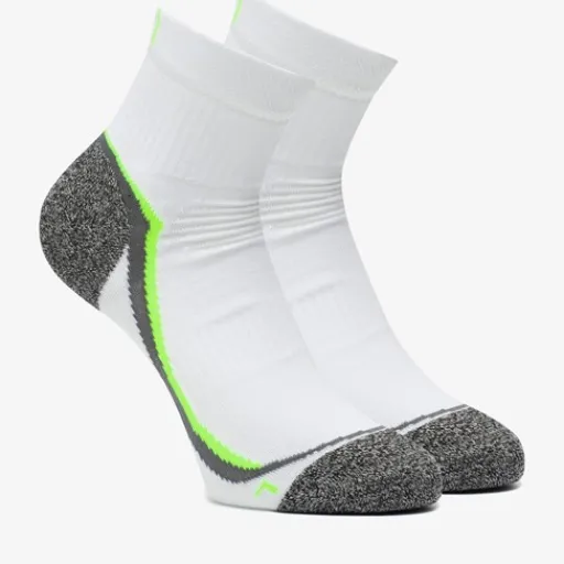 Witte hardloopsokken voor heren en dames van Osaga. Voorzien van een versteviging in de tenen en hak. De hardloopsokken zijn gemaakt van 43% katoen, 35% coolmax, 10% polyamide, 10% polyester en 2% elastaan.