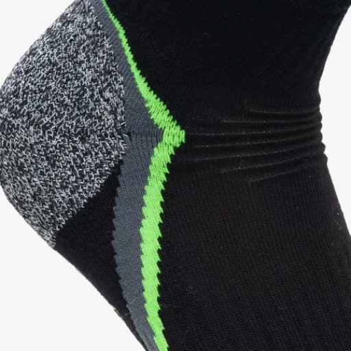 Zwarte hardloopsokken voor heren en dames uit de Osaga collectie. De hardloopsokken hebben een bovenwerk van badstof, ondersteuning op de wreef en zijn vervaardigd van vochtregulerend materiaal zodat je voeten droog blijven tijdens het hardlopen. Gemaakt van 43% katoen, 35% Coolmax, 10% polyamide, 10% polyester en 2% elasthan.