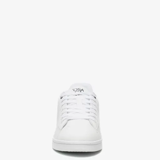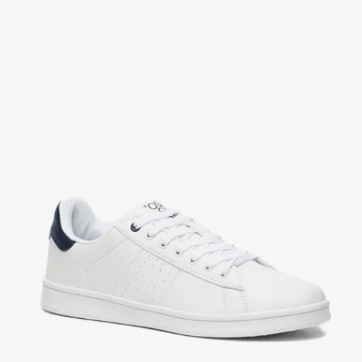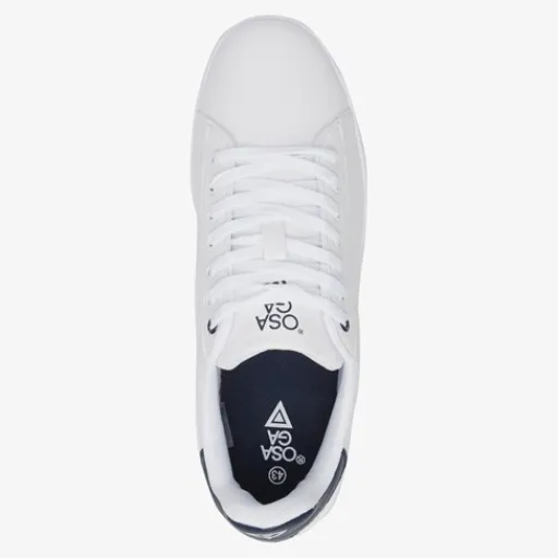 Witte sneakers voor heren uit de Osaga collectie. Gemaakt van imitatieleer, een binnenwerk van textiel en een stevige profielzool van rubber. De schoenen hebben een vetersluiting en comfortabel voetbed van textiel. Deze is niet uitneembaar. Voorzien van donkerblauwe accenten op de hiel. Deze klassieke sneakers zijn eindeloos te combineren!