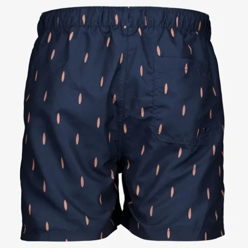 Donkerblauw zwemshort voor heren. Voorzien van een elastische tailleband met aantrekkoordjes en een binnenbroekje. De korte zwemshort heeft een all over print. Gemaakt van 100% polyester en mesh.ΒΆΒΆ