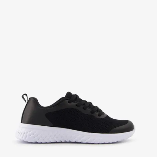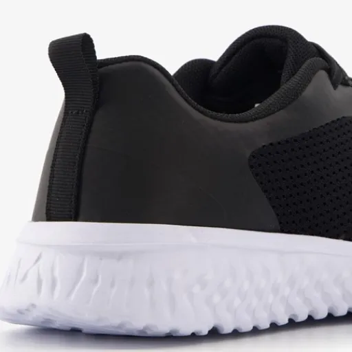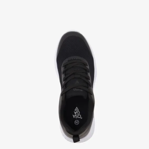Zwarte Osaga Play sneakers voor kinderen. Het buitenwerk is gemaakt van mesh en imitatieleer, het binnenwerk van textiel en de stevige profielzool van rubber. Voorzien van een vetersluiting voor een goede pasvorm en hiellusjes voor een makkelijke instap. Het comfortabele voetbed van textiel is uitneembaar zodat je eventueel jouw eigen zolen in de schoenen kan dragen. Deze gave sportschoenen hebben een opvallende witte zool.
