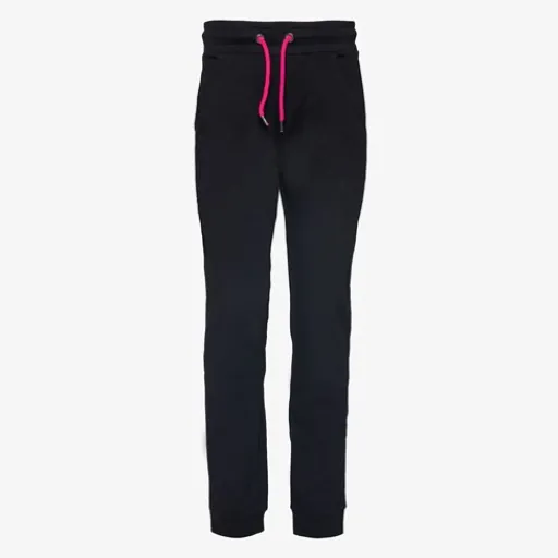 Zwarte joggingbroek voor kinderen uit de Osaga collectie. Voorzien van een elastische tailleband met roze aantrekkoordjes en twee steekzakken. De joggingbroek heeft elastiek in de broekspijpen en is gemaakt van 75% polyester en 25% katoen.ΒΆ