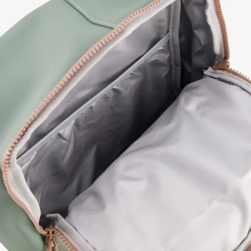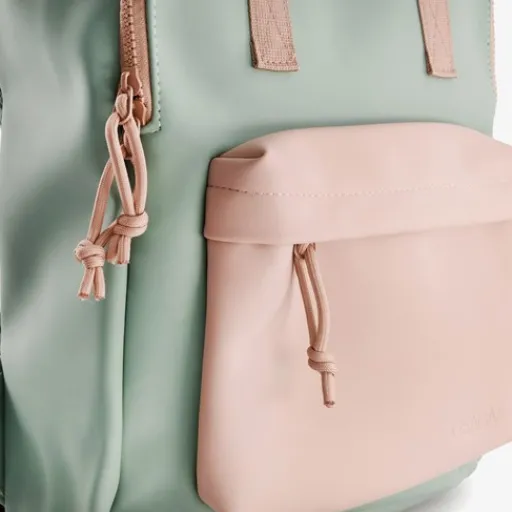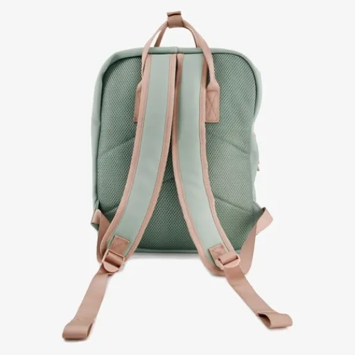 Groene rugzak met roze details voor kinderen van Osaga. Voorzien draaglussen aan de bovenkant en gewatteerde, verstelbare schouderbanden. Voorzien van een ruime hoofdvak met dubbele ritssluiting en een voorvak met rits. De tas is gemaakt van imitatieleer en de inhoud is 11 liter. Afmetingen: 12 x 35 x 27 cm.