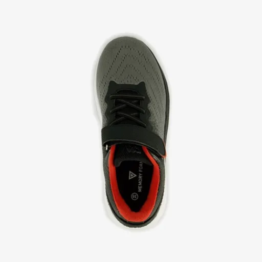 Grijze sportschoenen voor kids. Gemaakt van mesh, een binnenwerk van textiel en een flexibele zool. De sportschoenen hebben elastische veters met klittenbandsluiting en een vast voetbed van textiel. Het bovenwerk is gemaakt van ademend mesh.