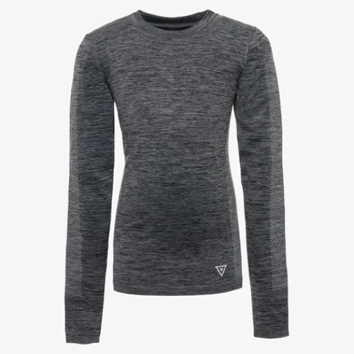 Grijs thermoshirt voor kids van Osaga. Het thermoshirt heeft lange mouwen en een hoge, ronde hals. Het shirt is nauwaansluitend. Gemaakt van 60% polyester, 35% nylon en 5% elastaan.