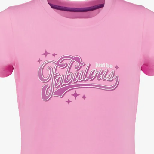 Dit paars-roze sport setje voor meisjes is ideaal voor gym of fitness. De set bestaat uit een roze T-shirt met een leuke tekstopdruk aan de voorzijde, een ronde hals en korte mouwen. De paarse short heeft aantrekkoordjes en een tekstopdruk op de bovenbeen. Dit Osaga sport setje voor meisjes is gemaakt van 95% katoen en 5% elastaan.