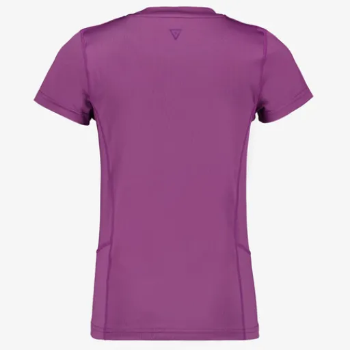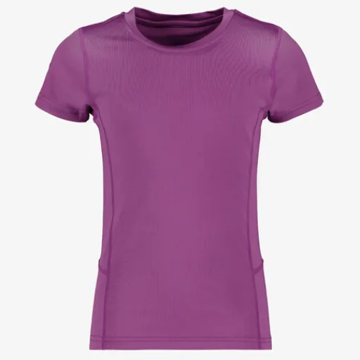 Paars sport T-shirt voor meisjes van Osaga. Voorzien van een ronde hals en korte mouwen. Gemaakt van 87% polyester en 13% elastaan.