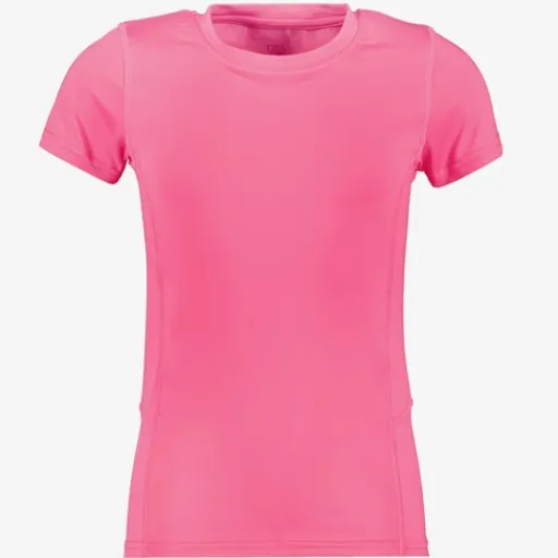 Roze sport T-shirt voor meisjes van Osaga. Voorzien van een ronde hals en korte mouwen. Dit mooie sport shirt is vervaardigd van sneldrogend materiaal en heeft een comfortabele pasvorm. Gemaakt van 87% polyester en 13% elastaan.