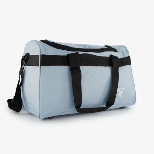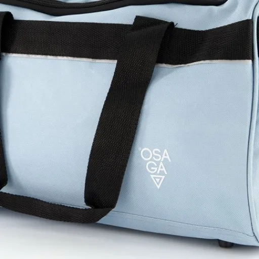 Lichtblauwe Osaga Pro Active sporttas. Voorzien van twee draaggrepen met klittenbandsluiting en een verstelbare, afneembare schouderband. De sporttas heeft een hoofdvak met ritssluiting en een versteviging in de bodem. In het hoofdvak zit een extra vakje met ritssluiting voor je telefoon en sleutels. De sporttas heeft een totale inhoud van 26 liter en is gemaakt van 100% polyester. Afmetingen: 39 X 25 X 27 cm.